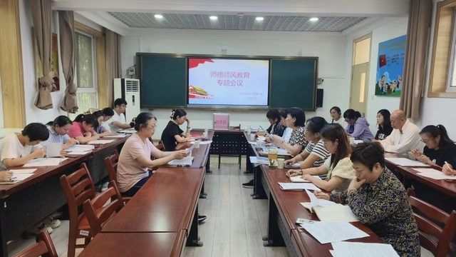 盛夏来临,暑期将至。为进一步加强师德师风建设,加强教师队伍管理,规范教师暑期行为,2024年7月4日,山东农业大学附属学校组织开展了弘扬师德师风,拒绝有偿补课--师德师风专题教育会议,全体教师参加。